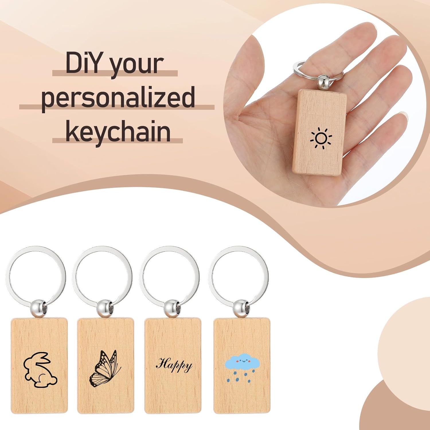 | Included Components | 100pcs wooden keychain blanks |