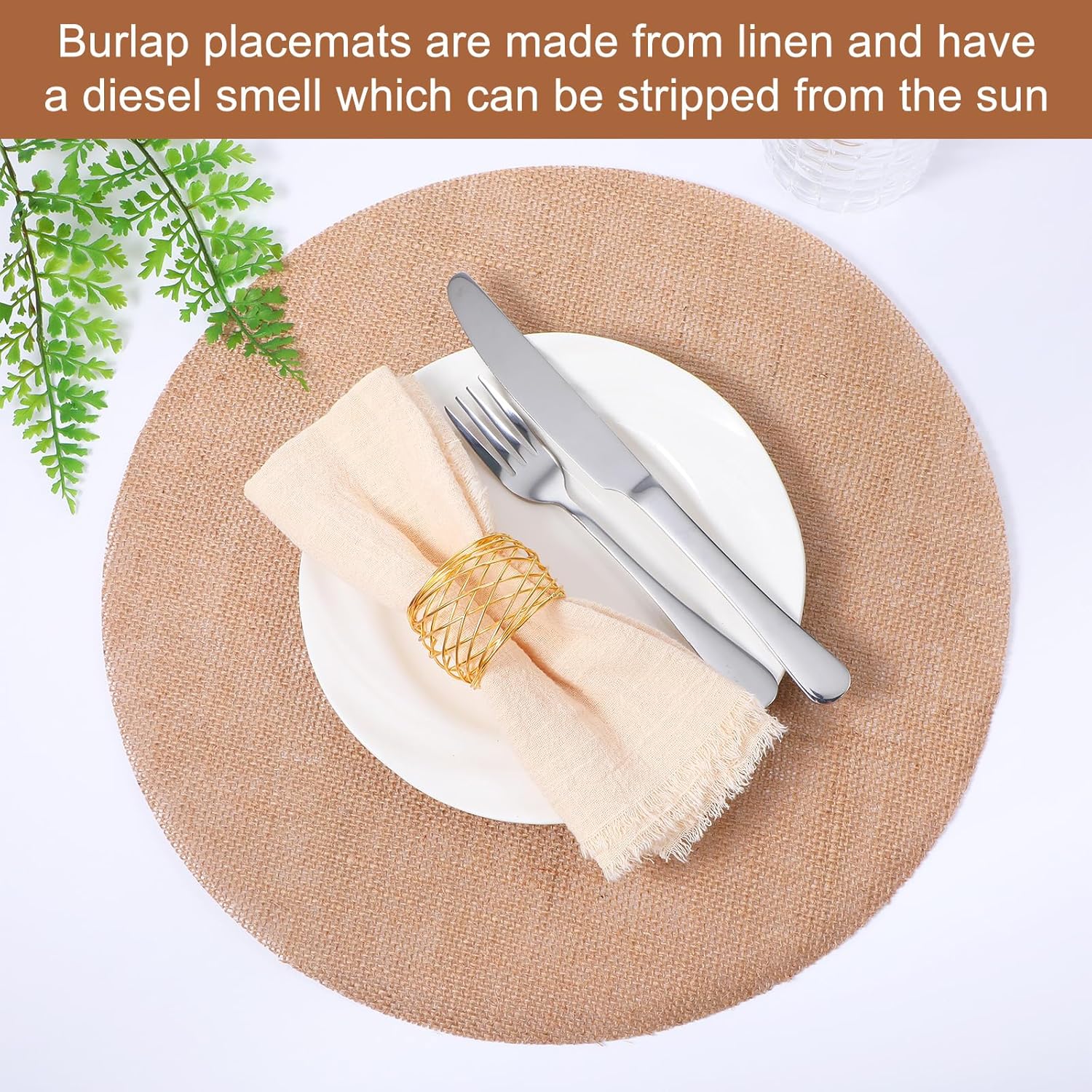 | Included Components | 100pcs x round jute placemat |