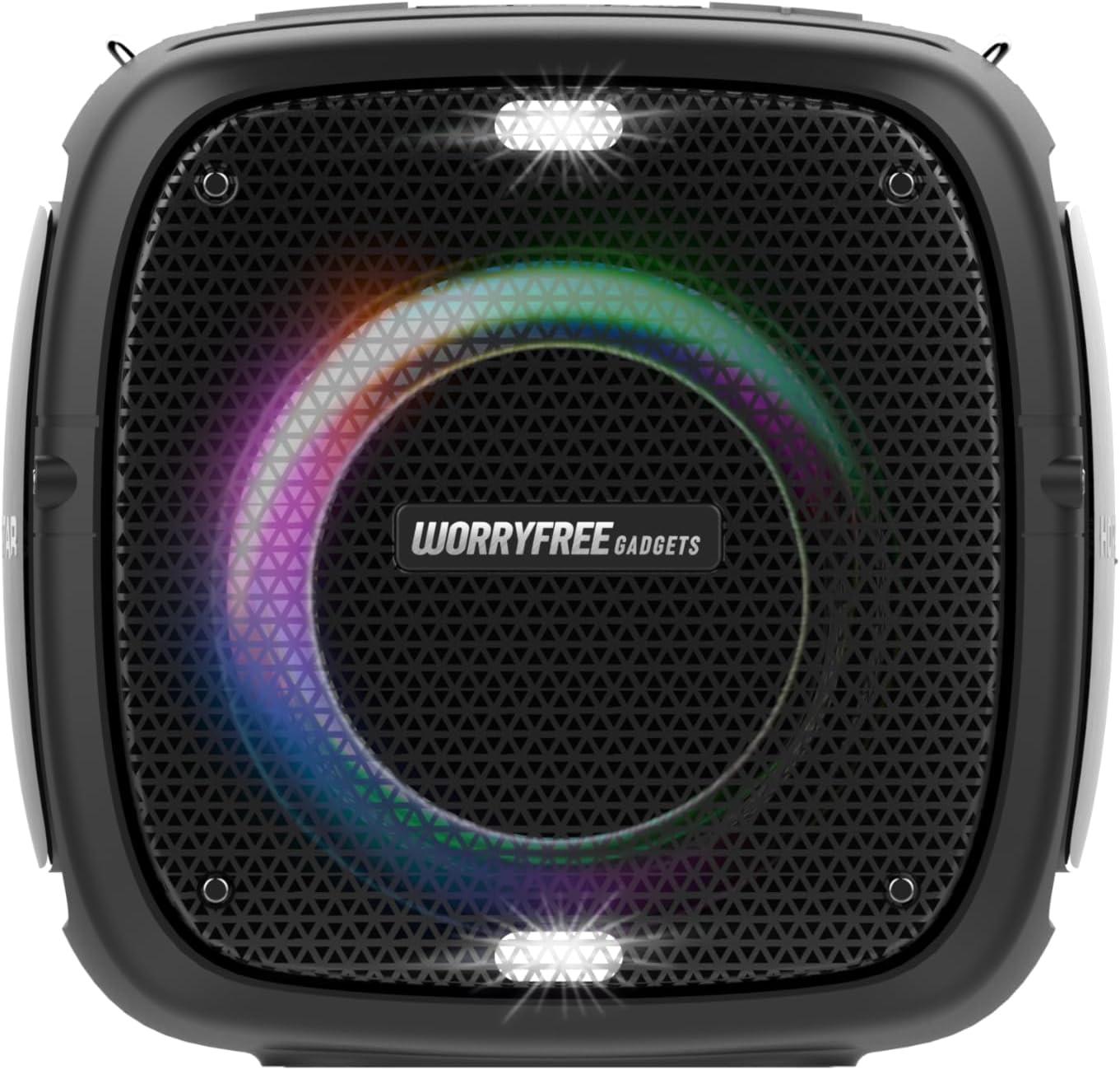 Bluetooth Speaker with Two Microphones and Tripod Stand This 80W wireless speaker offers powerful sound and long-lasting performance, perfect for music lovers. With Bluetooth, it provides stable connectivity within a 10-meter range. The 135mm 60W driver and dual 52mm 10W speakers deliver a frequency response of 15Hz to 18kHz, ensuring clear mids and highs. Powered by a longer battery life, it provides up to 10-12 hours of playtime. For added versatility, it includes a standard 3.5mm headphone jack. Supports easy charging with 5V ⎓2A input power. Ideal for both indoor and outdoor use, this speaker balances power and convenience. TWS pairing to connect two speakers together. Multicolor LED Lights. Memory card slot to play music of your choice. Expertly designed for music lovers, this 80W wireless speaker boasts powerful sound and reliable performance. Its Bluetooth 5.0 technology allows for stable connectivity within a 10-meter range, ensuring uninterrupted listening making it perfect for both indoor and outdoor use. Package Include: Bluetooth Speaker, 2 Microphones, Tripod stand, Manual, USB Cable, Charger, AUX Cable
