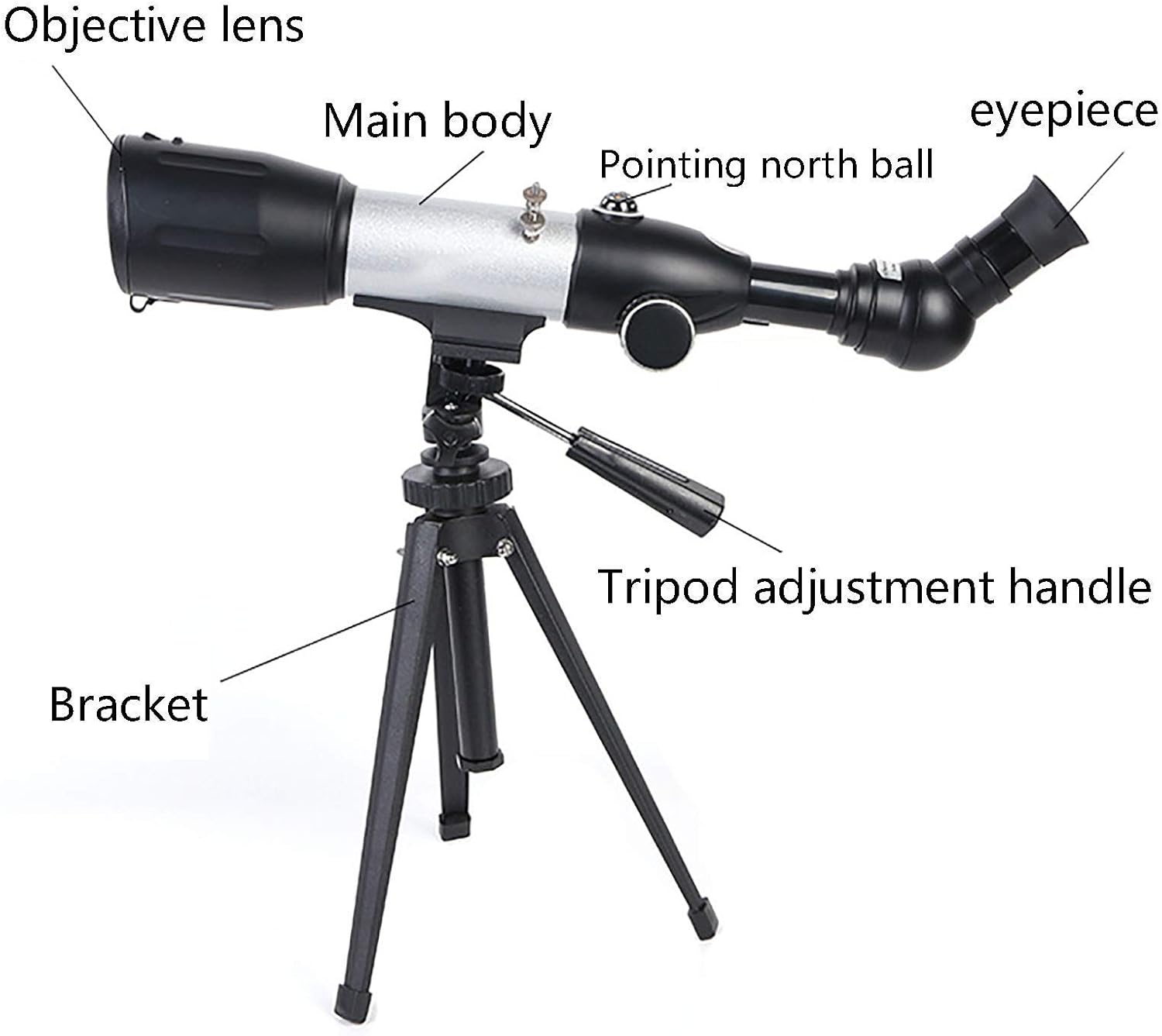 1. The refractor has a strong focal length, a large field of view, and a strong resolution.Multilayer optical coating,Refractive optical system,high light transmittance, and enhanced image brightness and clarity.Aluminum tripod 2. It is very suitable for astrometric work, and it performs well in observing the moon, planets, and binary stars. Easy to observe the ground view, very suitable for enlarged photography of the moon and planets 3. The telescope is suitable for beginners or children. It is easy to install and observe for beginners. It will encourage children to like learning space, get close to nature and stay away from electronic products. And provide a wonderful holiday or birthday gift idea for children who like science and astronomy. 4. If you have any questions about quality after receiving this space telescope, please contact us for the first time. We provide a high standard of 24/1451 customer service, and will do our best to solve it for you until you are satisfied.