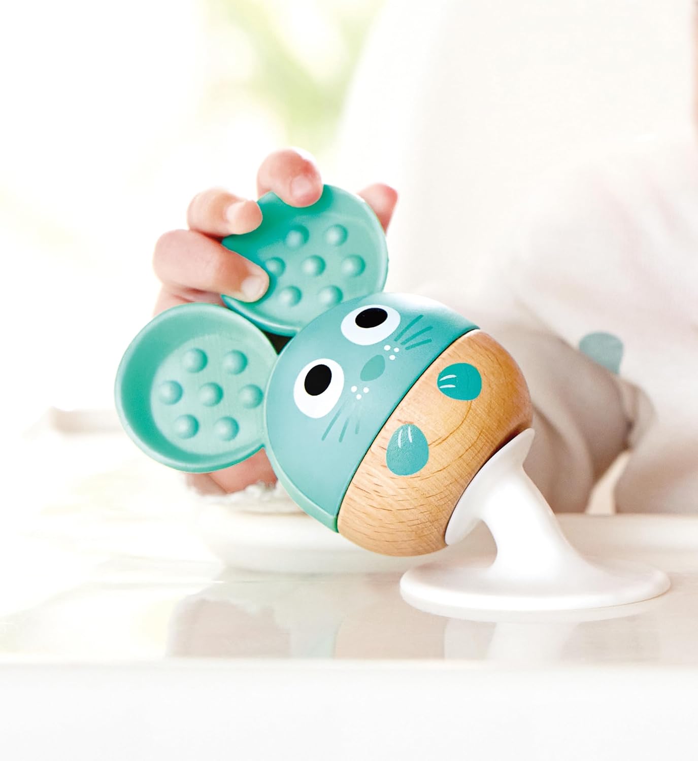 A delightful trio of mouse, rabbit, and chick rattles. These charming animal companions engage babies with silicone ears that can also massage gums. Plus, the gentle rattle sounds inspire curiosity and sensory exploration.