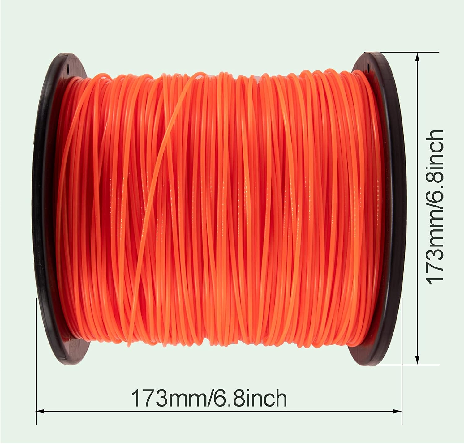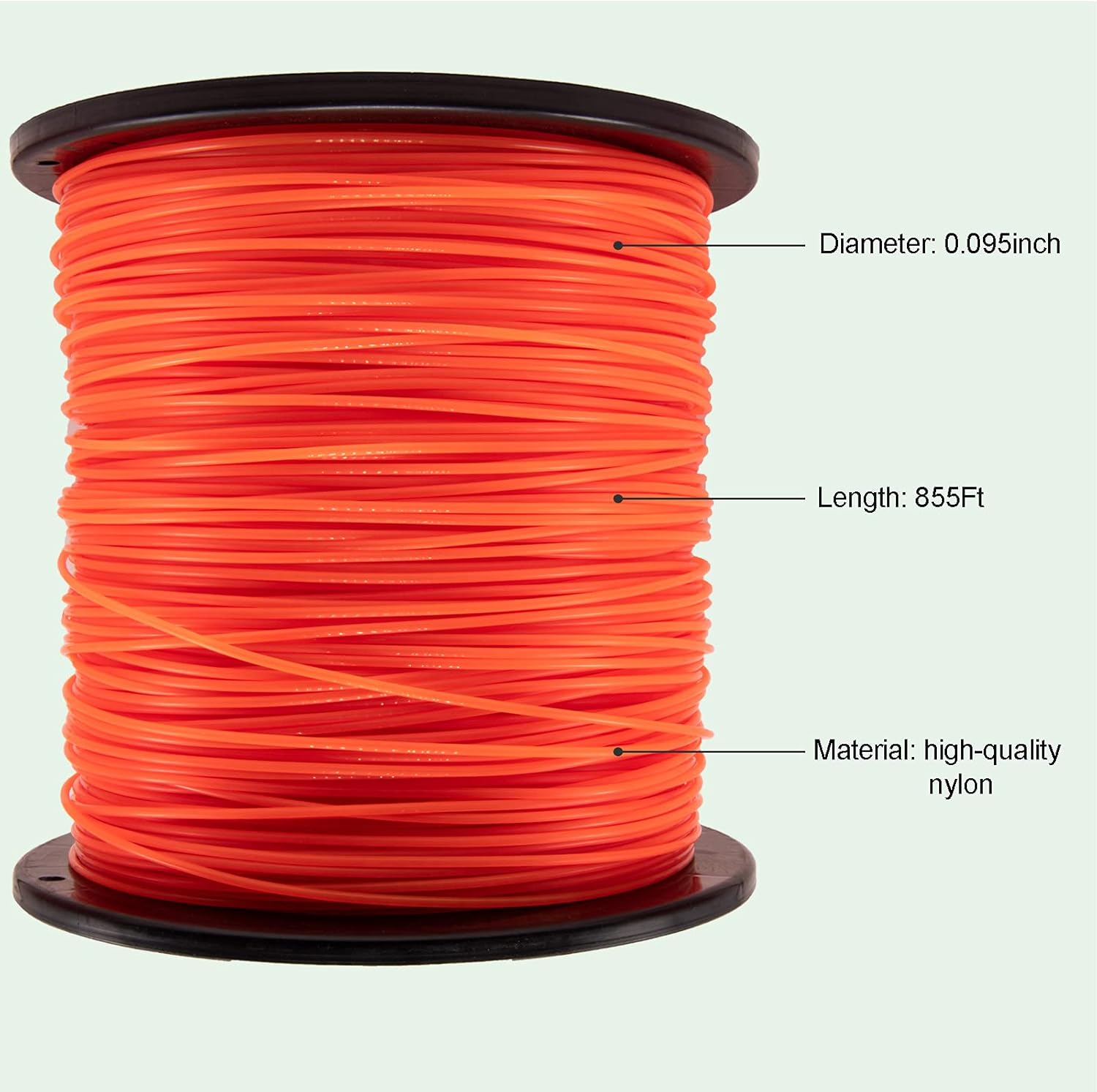 The .095 trimmer line is ideal for professionals who need long-lasting, powerful tools to get the job done right. It quickly and easily cuts through low grass and grass-like weeds yet is durable enough to tackle sizable brush without breaking.Great line, great durability! This 095 weed eater string is a very quality and durable string,round shaped line .095 made of high-quality nylon, sturdy and durable to use and not easy to break. Round trimmer line 0.095 inch diameter, 855ft long, approximately 3 lb. spool, Enough line Meet for multiple refills. The weed eater string .095 fits most gas and electric trimmers, perfect for string trimmers calling for .095-inch diameter line. Compatible with Husqvarna, Ryobi, Echo, Weed Eater, Craftsman, Black and Decker and other brands. package includes: 1x095 trimmer line(855ft)