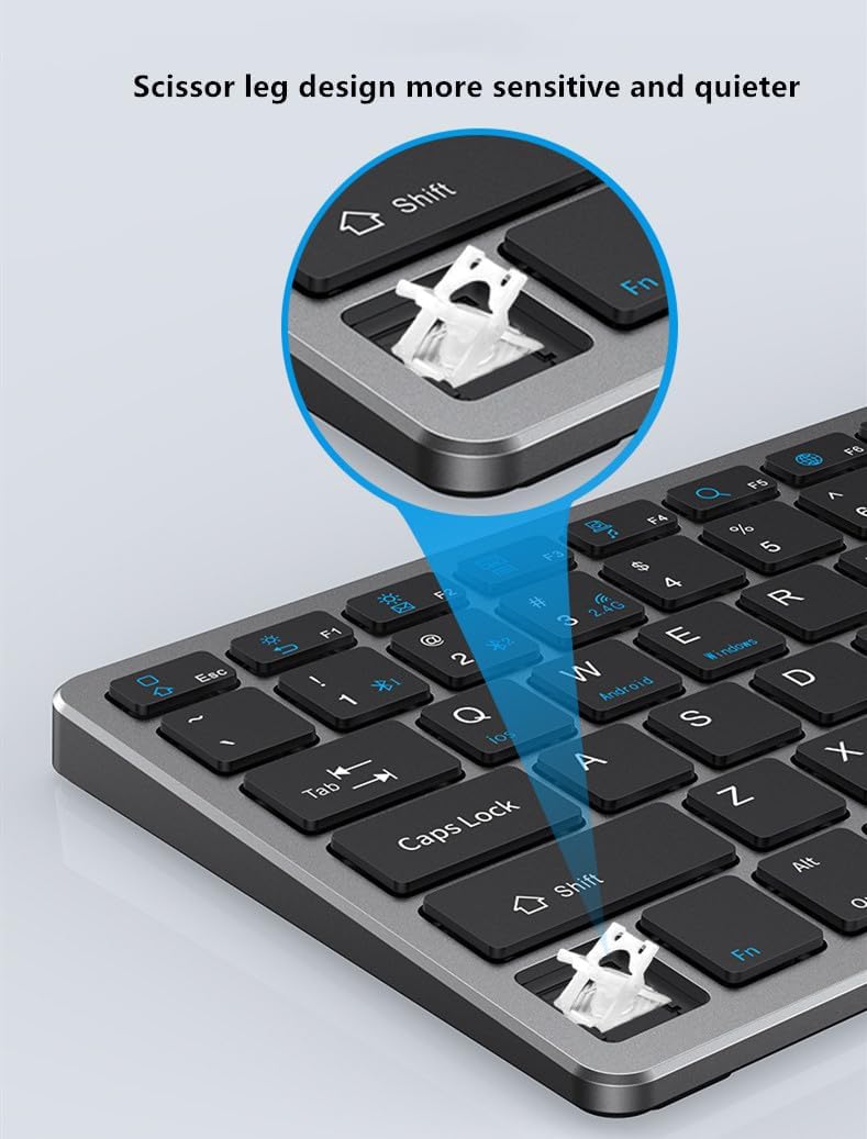 | Keyboard Description | Slim Wireless Keyboard With Multimedia Keys, Rechargeable Battery, And Multi-device Connectivity Supporting Bluetooth 3.0, 5.0, And 2.4g Wireless Connections |