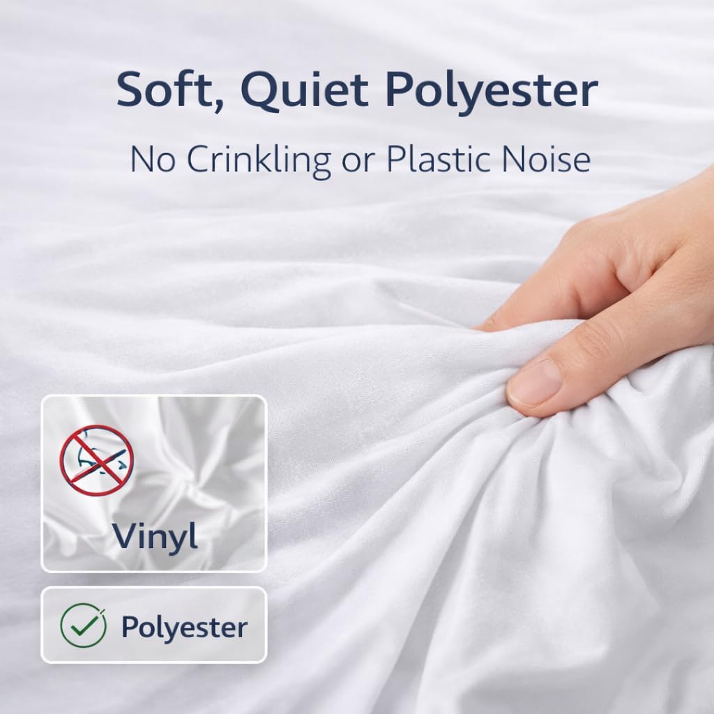 Upgrade your mattress protection with the Queen Size Soft Comfort Fitted Mattress Cover by Dependable Industries Inc. Essentials. Designed with an extra-deep 18 inch pocket, this cover stretches to fit even thicker pillow-top and luxury mattresses with ease. The soft polyester fabric resists moisture and dust while staying quiet and breathable throughout the night. An elastic-fitted skirt ensures a secure hold that won’t shift or bunch, and the machine-washable design allows for easy, repeat cleaning. Sized at 60" x 80" x 18", this fitted cover is ideal for master bedrooms, guest rooms, or anywhere premium protection is needed.