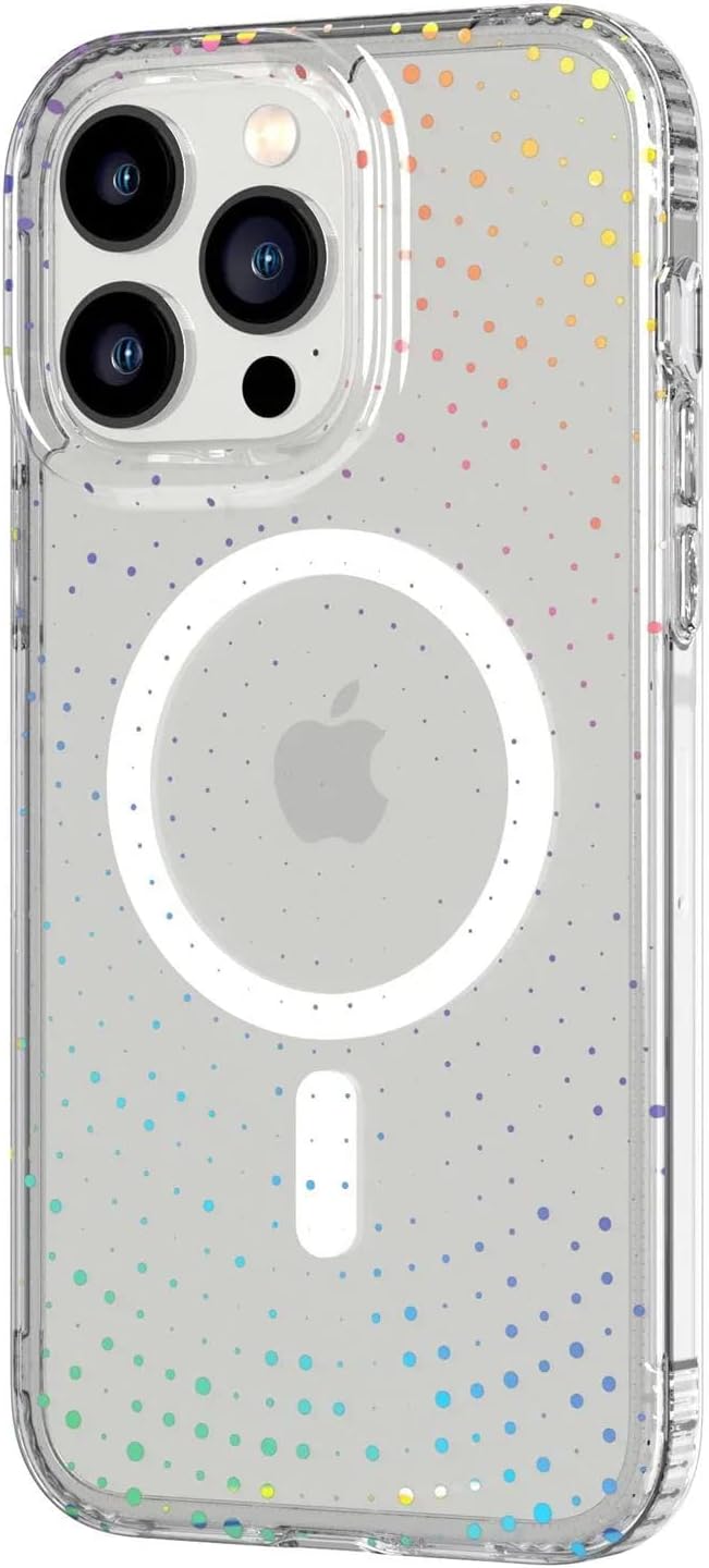 Tech 21 Evo Sparkle Avonbridge Radiant Protective Case with MagSafe for iPhone 14 Pro Max is hard case with an exclusive glittering design, superb scratch resistance and anti-yellowing technology. For the person who wants to add some shimmer and sparkle to their device while keeping it charged on the go. It offers up to 12ft (3.6m) multi-drop protection. Keep your images crisp and clean with raised camera lens protection. Perfect mix of protection and subtle self-expression.